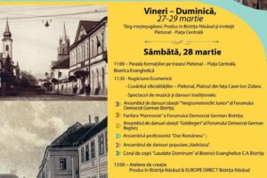 Târgul de Paște al sașilor bistrițeni – Ostermarkt, o tradiție veche de 900 de ani, va avea loc pe Pietonalul Liviu Rebreanu în weekendul 27-29 martie...