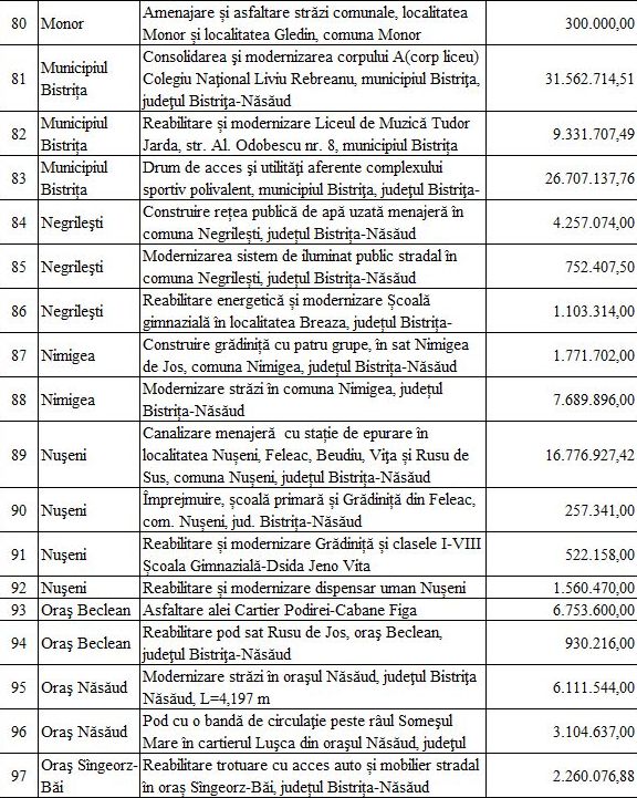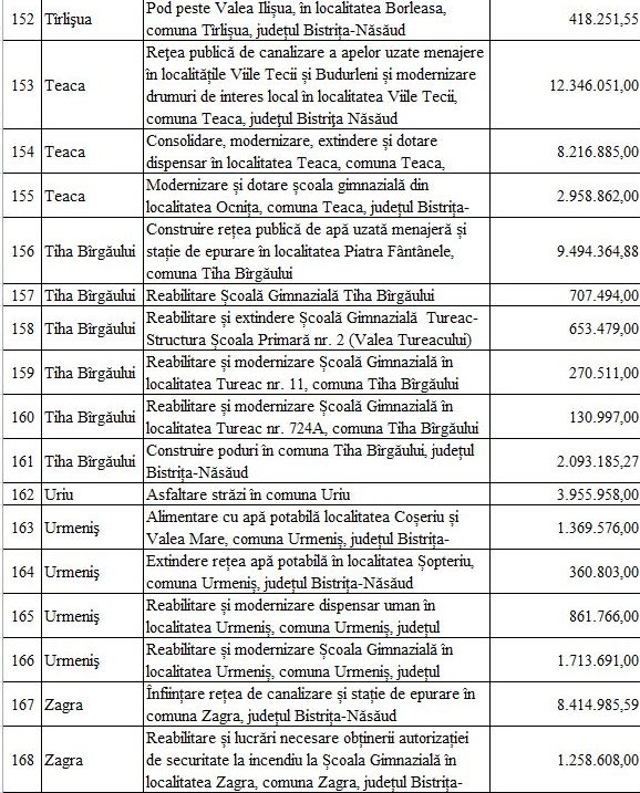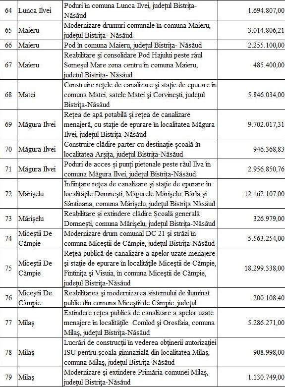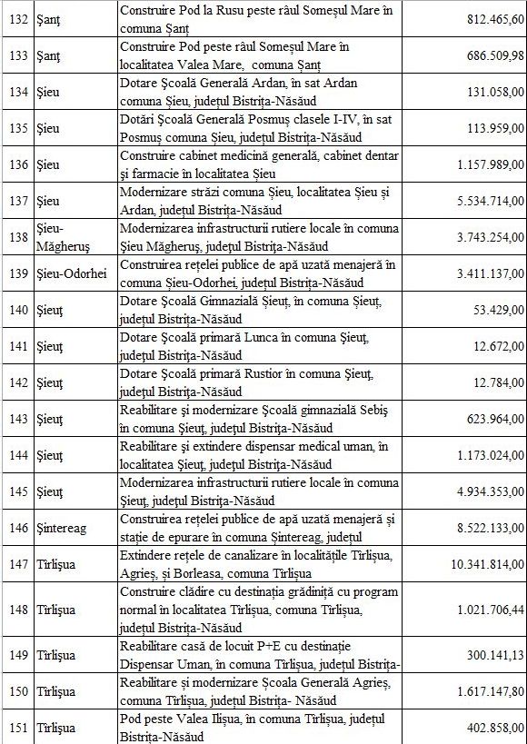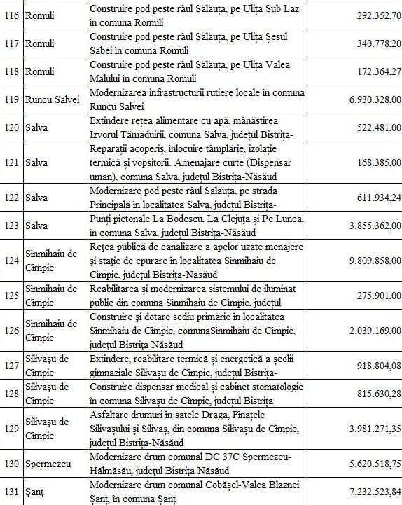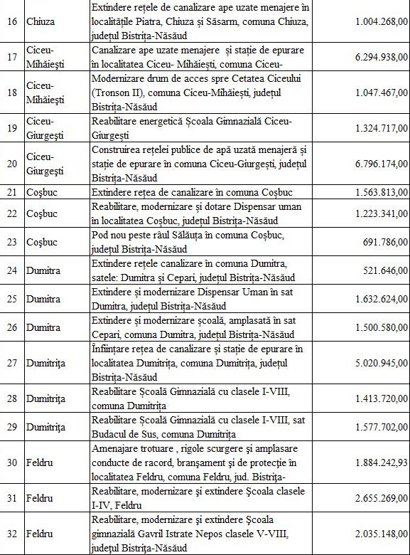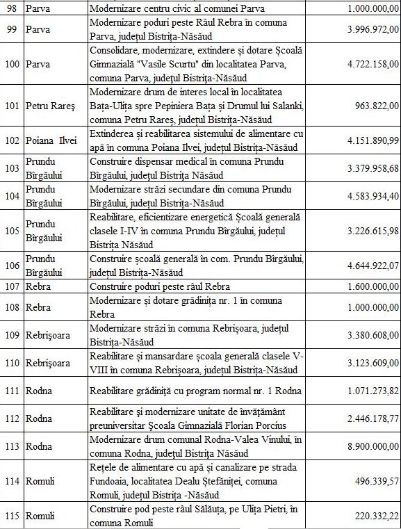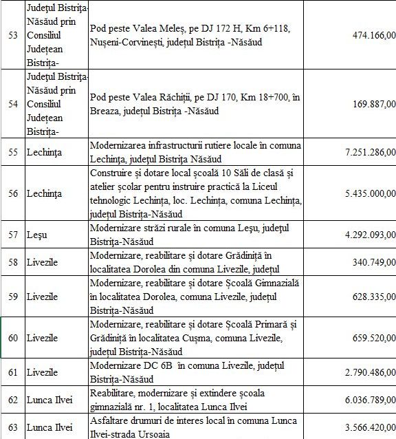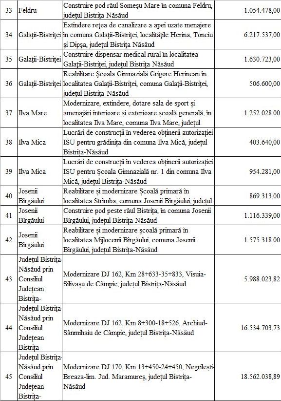 Iată lista proiectelor care se vor derula în Bistrița-Năsăud prin PNDL: