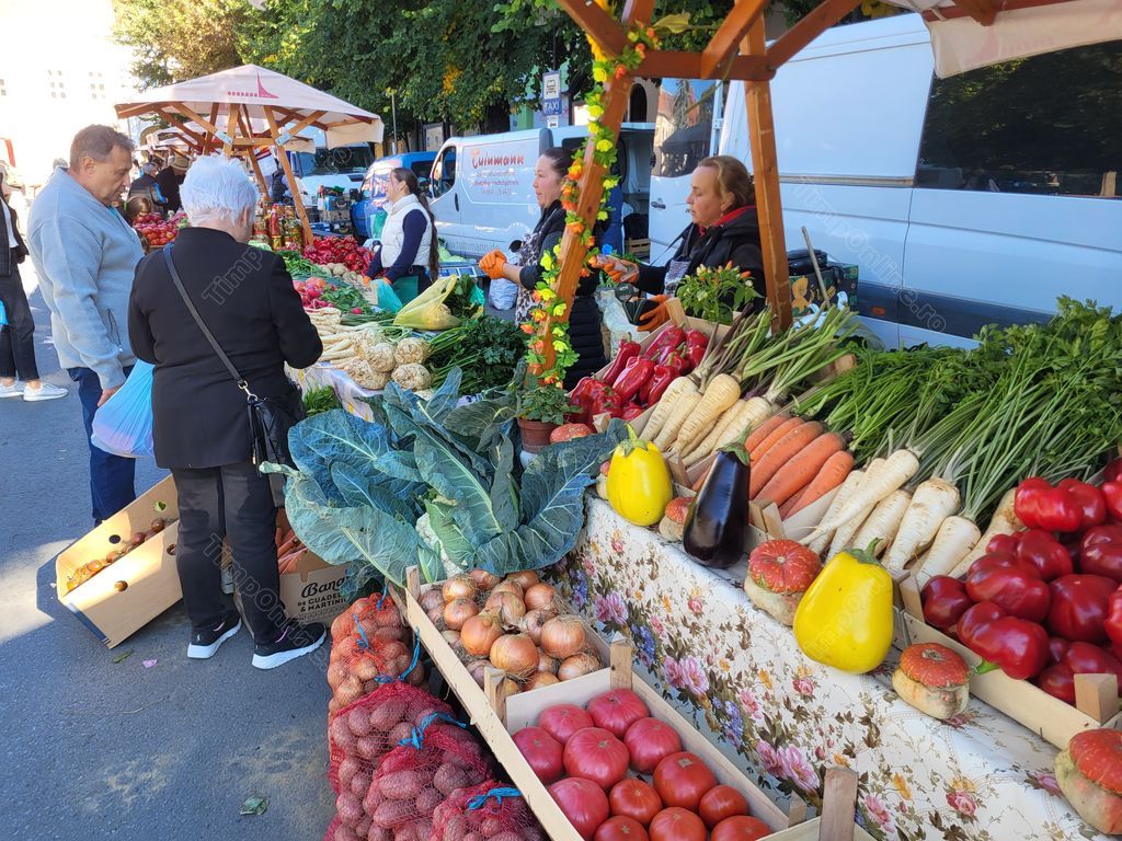În afară de membrii Asociației Produs în Bistrița-Năsăud care vin săptămânal cu marfă la piața locală, de data aceasta au mai venit și alți producători sau comercianți care vând în mod obișnuit în Piața Decebal.