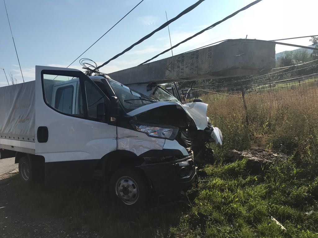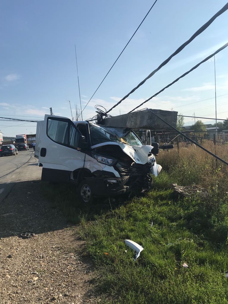 Accident la Bistrița: O autoutilitară a rupt un stâlp de electricitate (FOTO)