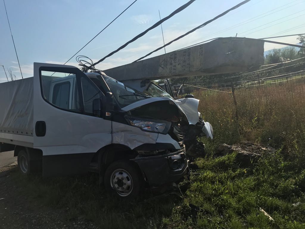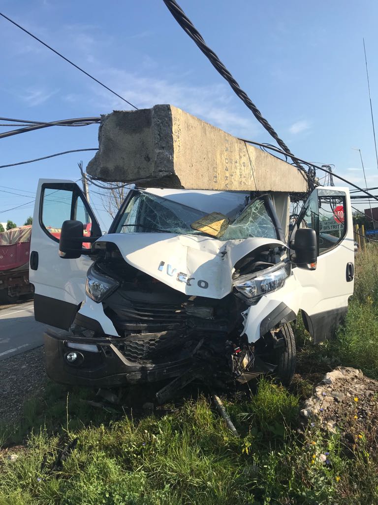 Se pare că șoferul autoutilitarei a vrut să depășească o mașină pe care a și acroșat-o, ajungând apoi în stâlp.