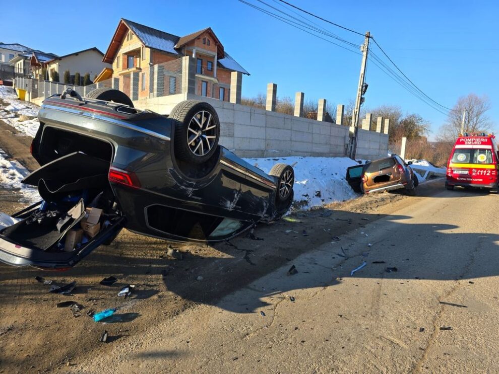 În urma accidentului, două mașini au ieșit în afara părții carosabile, una dintre ele răsturnându-se.