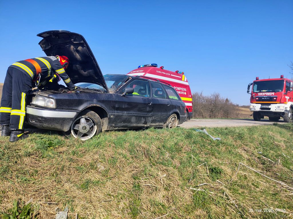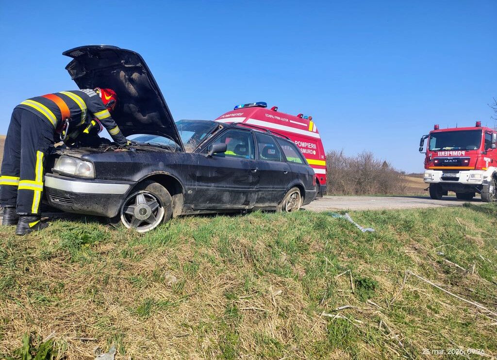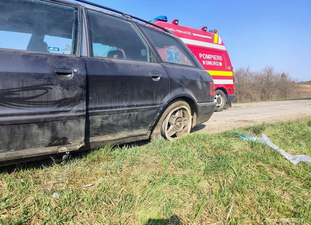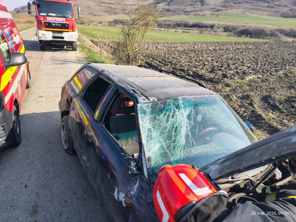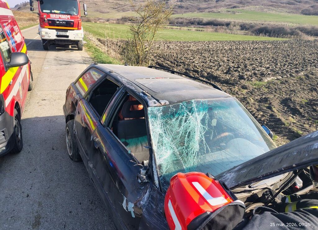 Un autoturism s-a răsturnat în afara părții carosabile pe DJ 151, între localitățile Sângeorzu Nou și Sânmihaiu de Câmpie.