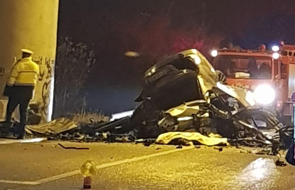 (FOTO) Grav accident de circulaţie la Bistriţa pe strada Industriei. Un şofer a intrat cu maşina într-un stâlp al pasarelei. Impactul a fost devastator, iar şoferul a murit. Iniţial, cei care au sunat la 112 au crezut că autoturismul ar fi căzut de pe pasarelă atât de zdrobit arată.