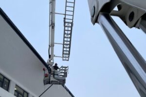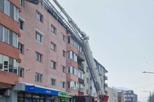 Două echipaje de pompieri cu autospeciale de lucru la înălțime, din cadrul ISU Bistrița-Năsăud, acționează pentru îndepărtarea țurțurilor formați pe clădirile...