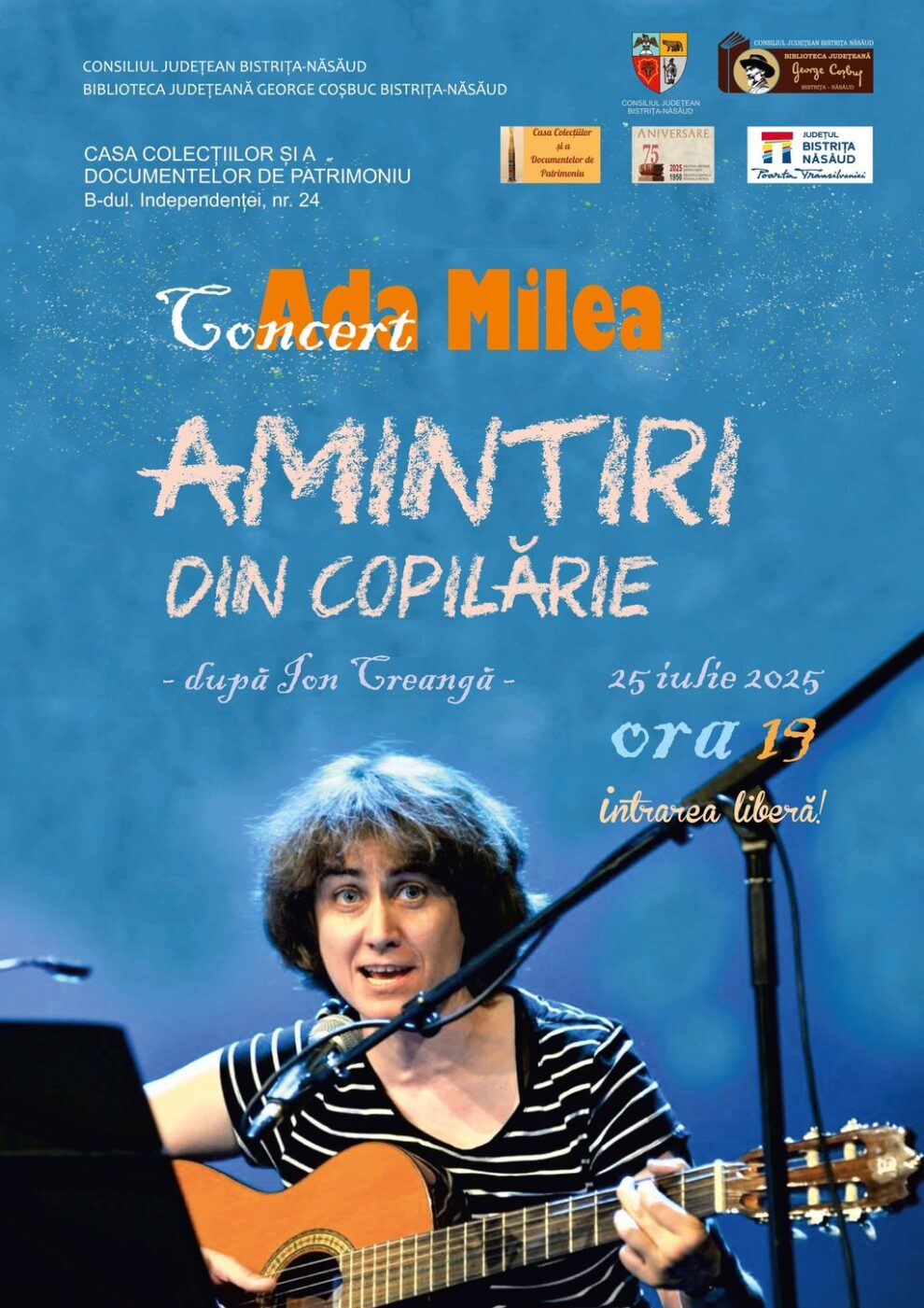 Ada Milea va concerta în data de 25 iulie, de la ora 19.00 la Casa Colecțiilor și Documentelor de Patrimoniu din Bistrița, intrarea la eveniment fiind liberă.
