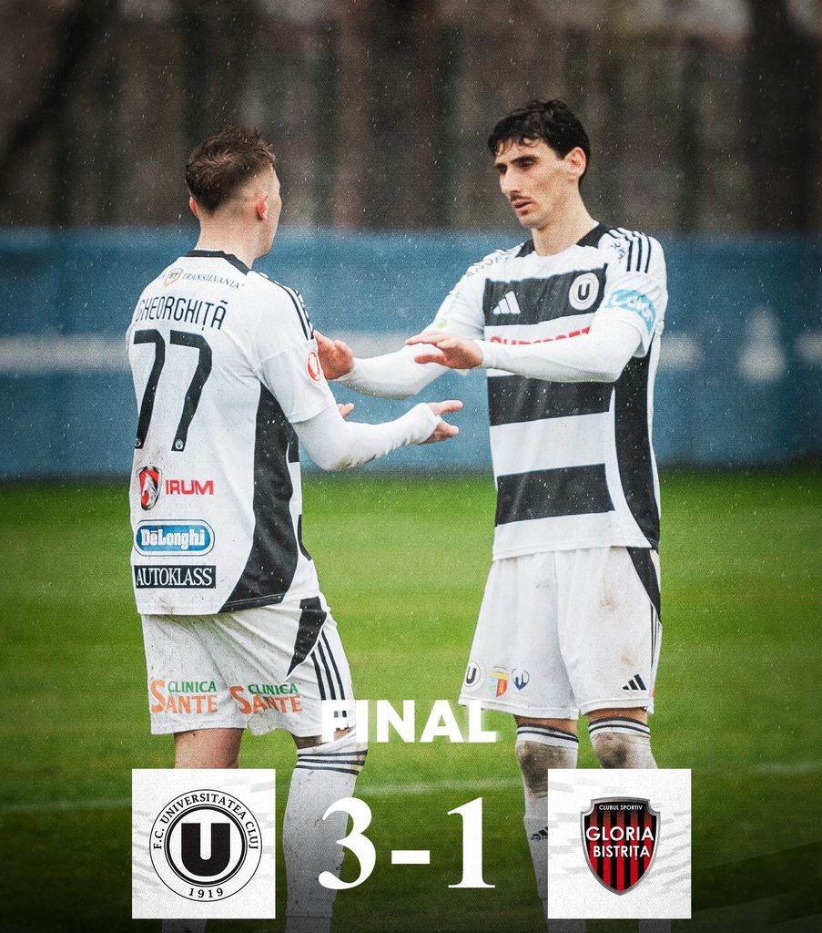În această pauză competițională prilejuită de meciurile echipelor naționale, Gloria Bistrița (locul 5 în Grupa A din play-out) a disputat în deplasare un meci amical cu liderul Superligii, Universitatea Cluj.