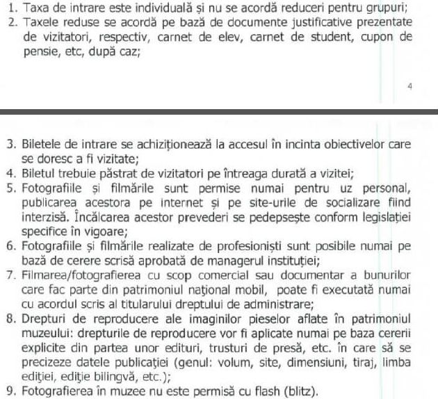 Domnilor din fruntea Complexului Muzeal, vi se pare că aţi avut prea mulţi vizitatori, de v-aţi hotărât să măriţi taxele pentru intrarea în incinta unităţilor de care dispuneţi ? Dacă veţi face o analiză atentă, după trecerea unui timp rezonabil, veţi putea observa cu regret că, de fapt i-aţi îndepărtat mai mult pe cei care ar fi putut fi vizitatori, şi în loc de eficientizarea activităţii desfăşurate, obţineţi de fapt opusul intenţiei iniţiale. Privind însă lucrurile din punct de vedere al “sensului” înfiinţării acestei instituţii create, acela de a face cunoscută istoria adevărată şi tradiţiile locuitorilor acestor ţinuturi, de educare a maselor largi în spiritul cunoaşterii şi cinstirii celor care au realizat istoria acestei regiuni a ţării, a relaţiilor social – culturale, economice şi politice în cadrul cărora s-au desfăşurat procesele istorice de-a lungul timpului, a evoluţiei civilizaţiei , al valorilor materiale şi spirituale realizate în acest areal natural, este un drept şi obligaţie a celor care-şi desfăşoară activitatea în acest cadru instituţional, în acelaşi timp o obligaţie a statului, prin conducătorii lui vremelnici din toate timpurile să contribuie gratuit, fără pretenţii financiare, la a transmite cunoştinţele obţinute, unor mase tot mai largi, atât autohtonilor cât şi străinilor, deoarece avem cu ce ne mândri şi astfel putem face cunoscut şi peste hotare acest colţ din România.