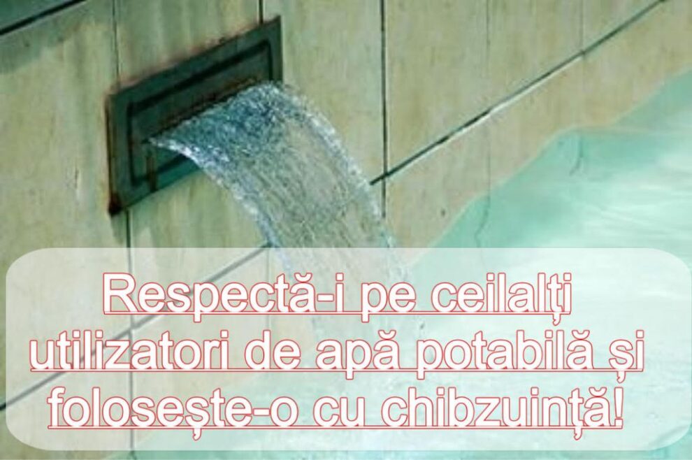 ”Rugăm din nou toți abonații să utilizeze apa potabilă provenită din rețeaua publică cu prudență și responsabilitate, doar în scopuri esențiale – pentru băut, nevoi igienico-sanitare și casnic, și de a evita sau reduce frecvența acțiunilor precum irigații, spălarea trotuarelor, umplerea piscinelor, etc.