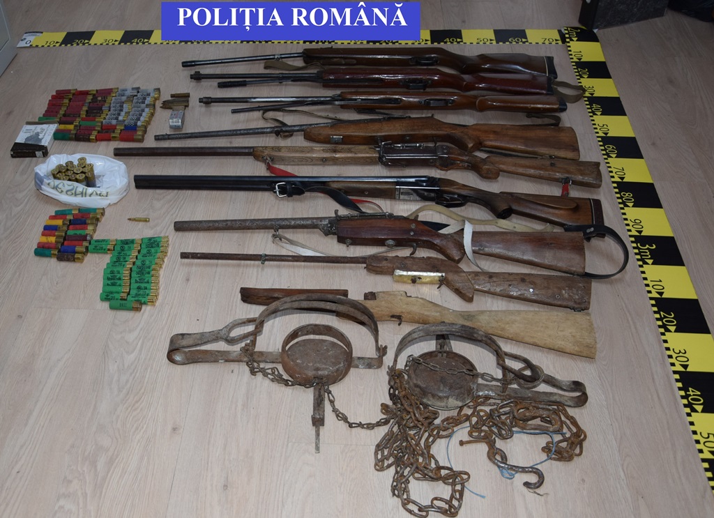 (FOTO) 10 arme și 133 de cartușe, toate deținute ilegal, precum și capcane utilizate la acțiuni de braconaj au fost ridicate de polițiști în urma unei percheziții domiciliare, informează Inspectoratul de Poliție Județean Bistrița-Năsăud.