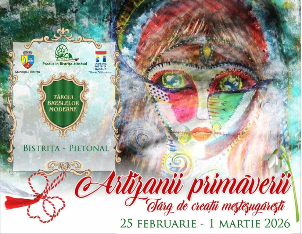 În perioada 25 februarie – 1 martie, pe Pietonalul Liviu Rebreanu din Bistrița are loc târgul de creații meșteșugărești ”Artizanii Primăverii”, marca ”Produs în Bistrița-Năsăud”.