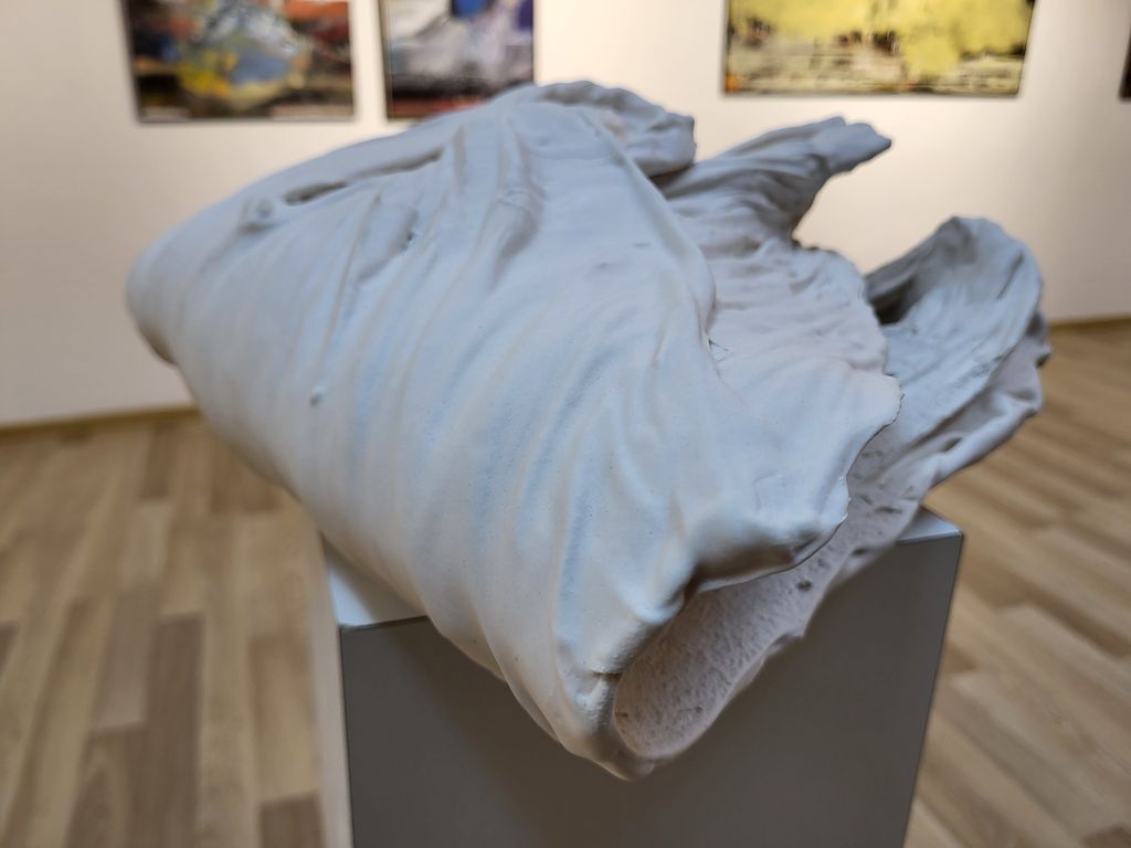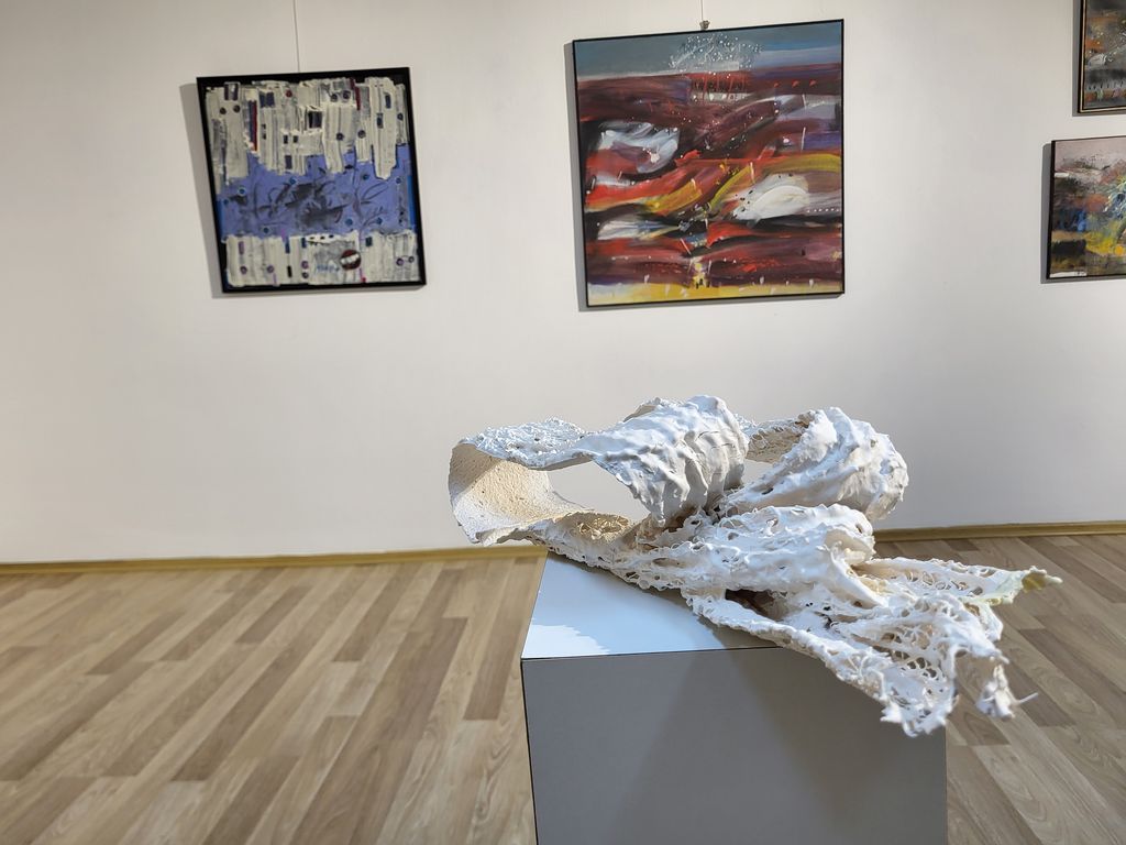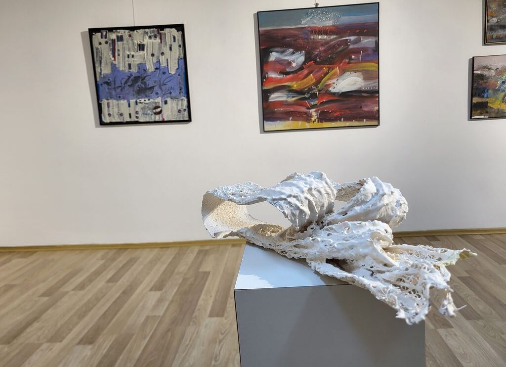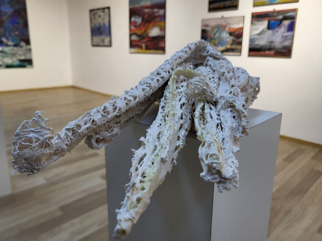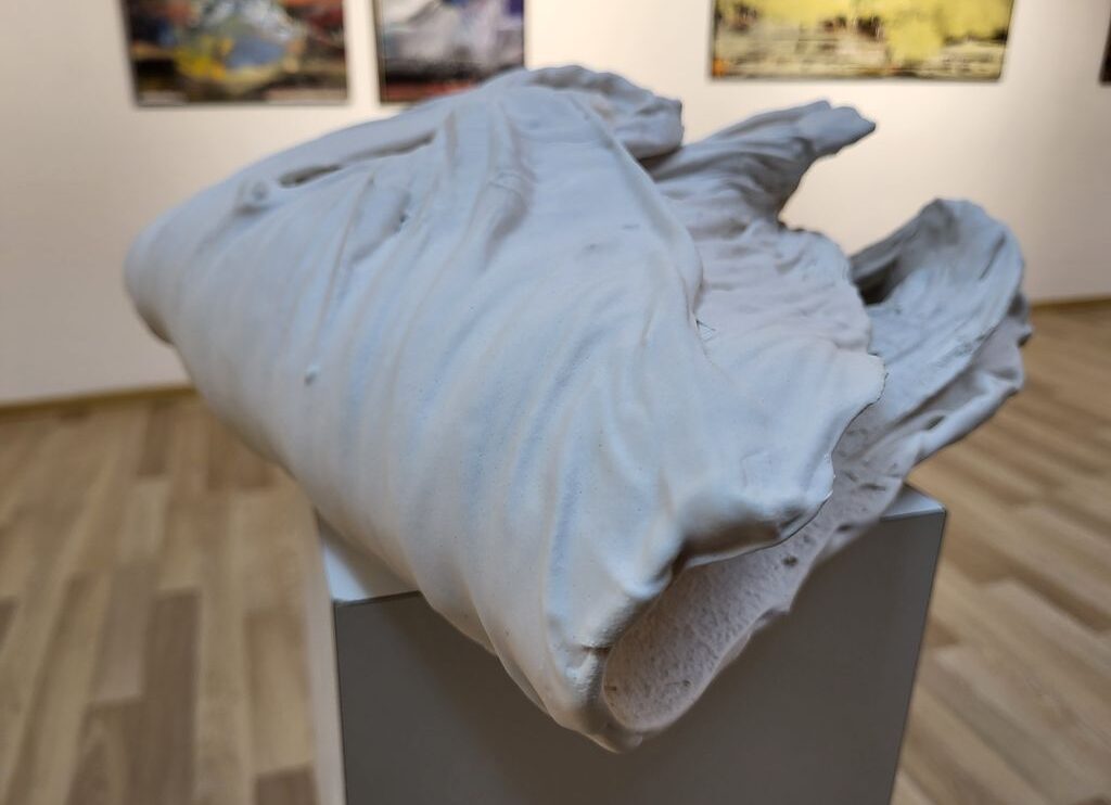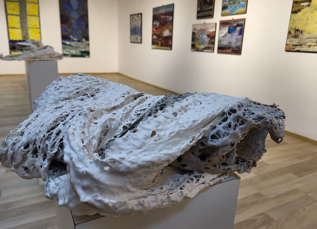 În expoziția de acum, el a adus patru lucrări din porțean, care fac parte dintr-un nou concept la care lucrează acum.