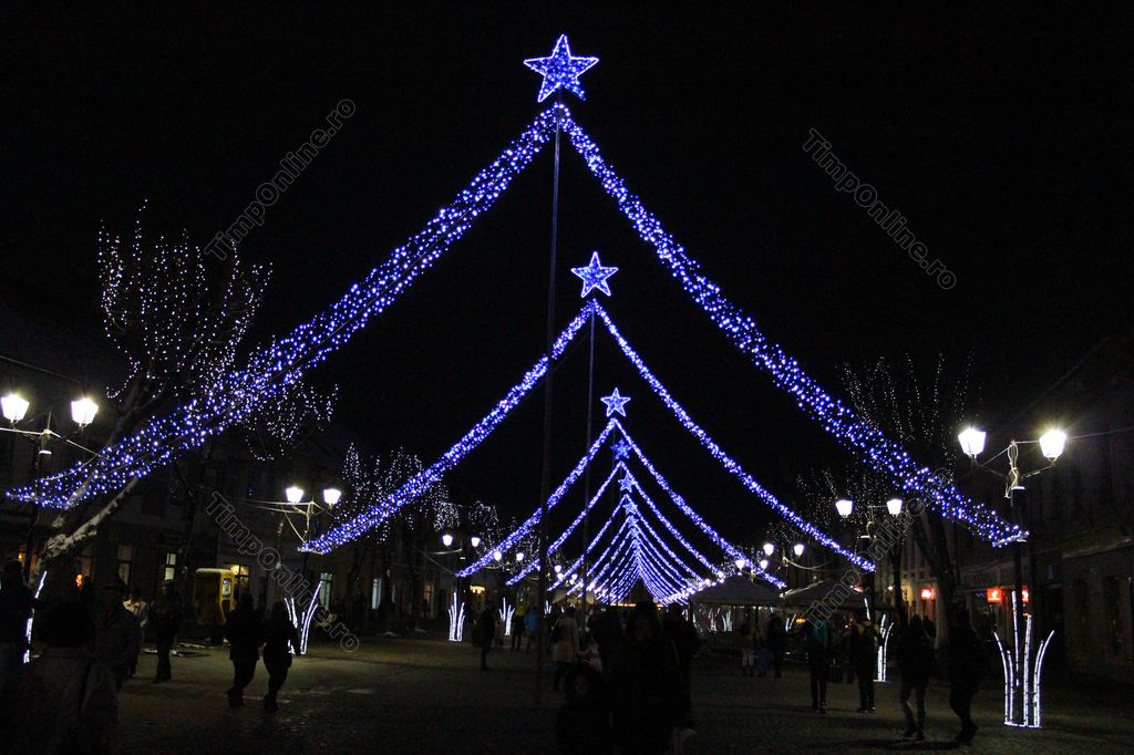 De departe cele mai frumoase luminite sunt ghirlandele agatate in coroana COPACILOR din Piata Centrala. Admirati- le in liniste dar sa stiti ca vine timpul cand trebuie sa luam o atitudine comuna in a apara aceasta frumoasa Piata cu tot ce este verde , de asa zisul proiect de modernizare impus de edilul saf, care vrea sa rada perimetrul de tot ce este in prezent acolo si sa inlocuiasca privelistea cu DALE, BORDURI, BETOANE , HALAUA . Dezastros proiect si care va isca un santier in lucru pe doi ani.