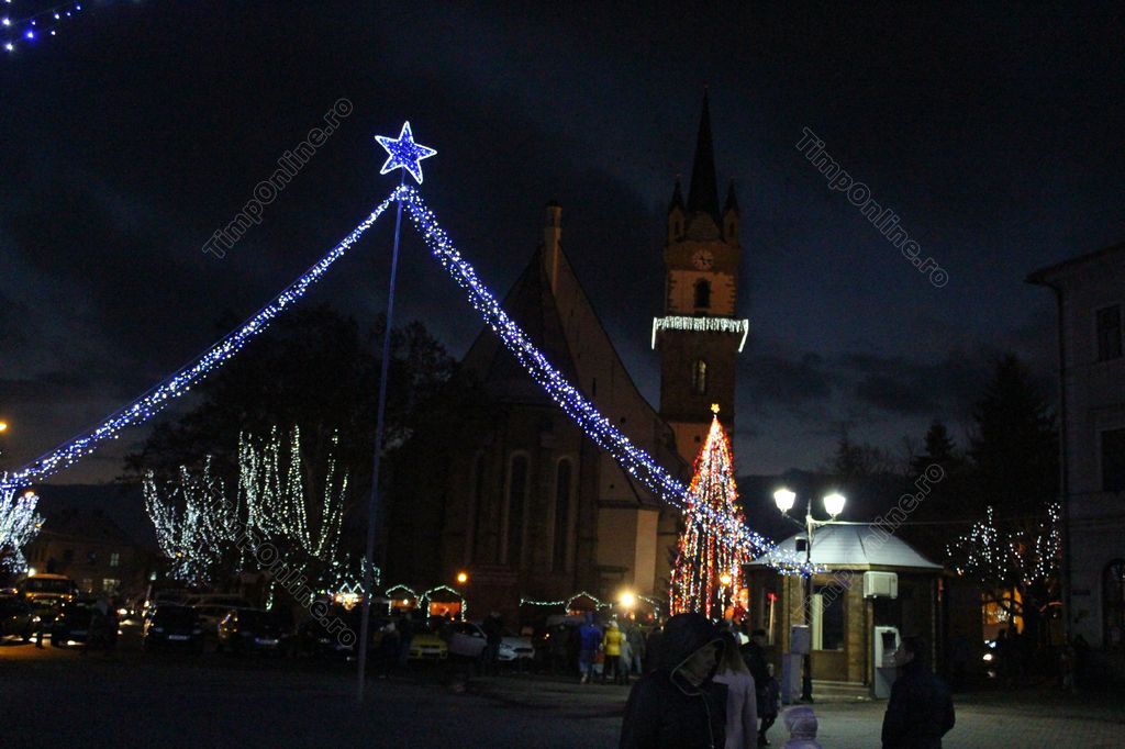 Luminile feerice de sărbători în centrul istoric al Bistriței și pe principalele artere ale orașului au fost aprinse, conform obiceiului, în ajun de Moș Nicolae. Pornirea iluminatului festiv s-a făcut în cadrul unui eveniment festiv devenit tradiție și organizat de municipalitate pe podiumul de lângă bradul împodobit în Piața Centrală.