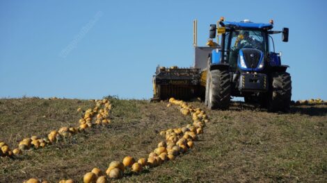 Două utilaje moderne, achiziționate cu bani europeni, adună semințe de dovleac direct din câmp, un real sprijin pentru Cooperativa Agricolă...