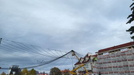 În Piața Petru Rareș, în fața Palatului Administrativ aflat în plină reabilitare, au fost montate pe stâlpi ghirlandele pentru iluminatul festiv...