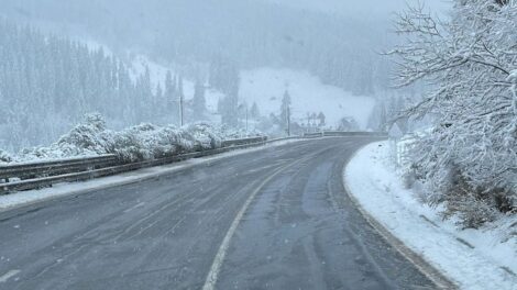 Pe Drumul Național 17 care face legătura între Transilvania și Bucovina, urmare a ninsorii și a viscolului, în Pasul Tihuța spre județul Suceava...