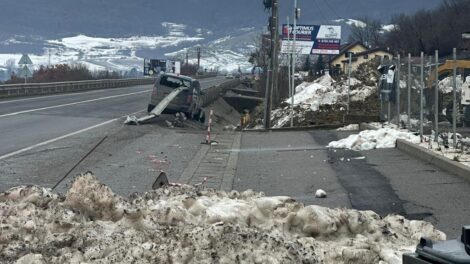 O mașină s-a înfipt în parapetele de la marginea DN 17. Bara metalică a intrat prin mașină și a spart inclusiv luneta. Accidentul s-a petrecut între...