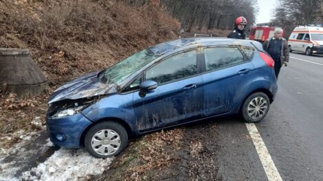 O mașină a derapat la coborârea de pe dealul Herinei și a intrat într-un șanț la marginea DN15A. Șoferul a fost ajutat de alți participanți la trafic...