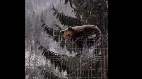 Un ursuleț de cel mult un an a fost filmat la Colibița în timp ce alerga la marginea drumului, după care, speriat, a sărit peste un gard de sârmă...