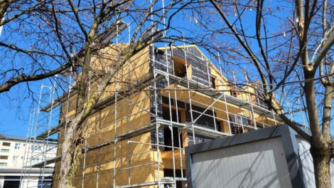 Compania Silvania Sortilemn lucrează de zor la blocul pe structură din lemn de pe Aleea Trandafirilor din Bistrița care va avea consum de energie...