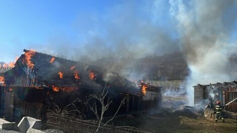 Două echipaje de pompieri cu autospeciale de stingere, alături de un echipaj aparținând Serviciului de Ambulanță Județean Bistrița-Năsăud si...