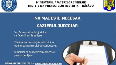 Instituția Prefectului Bistrița-Năsăud anunță eliminarea obligativității prezentării certificatului de cazier judiciar la depunerea cererilor pentru...