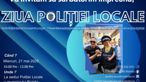 Ziua Poliției Locale va fi sărbătorită la Bistrița miercuri 21 mai, când vor avea loc prezentări de autospeciale și echipamente, activități...