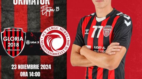 Echipa de fotbal Gloria 2018 Bistrița-Năsăud, care ocupă prima poziție în Seria 7 a Ligii 3, joacă pe teren propriu în etapa a 13-a, cu ACS Târgu...
