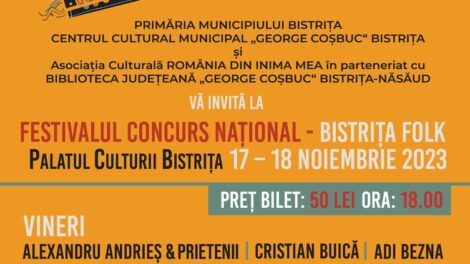 A XXI-a ediție a Festivalului concurs național Bistrița Folk se va desfășura la Palatul Culturii în perioada 17-18 noiembrie. Concursul, la care se...