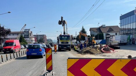 Pe traseul Liniei Verzi, proiect cu bani europen derulat de Primăria Bistrița, se lucrează pe Calea Moldovei, la intersecția din fața spitalului, pe...