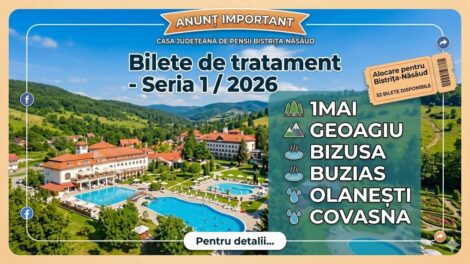 Casei Județene de Pensii Bistrița-Năsăud i-au fost repartizate 52 bilete de tratament balnear aferente seriei 1/2026, cu intrare începând cu data de...