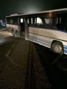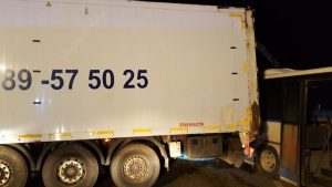 Un autobuz care transporta muncitori la una dintre fabricile firmei Leoni din Bistriţa care urmau să lucreze în schimbul de noapte a fost implicat într-un accident rutier luni în jurul orei 23.00 când a lovit din spate un TIR oprit la marginea DN 17 în localitatea Viişoara.