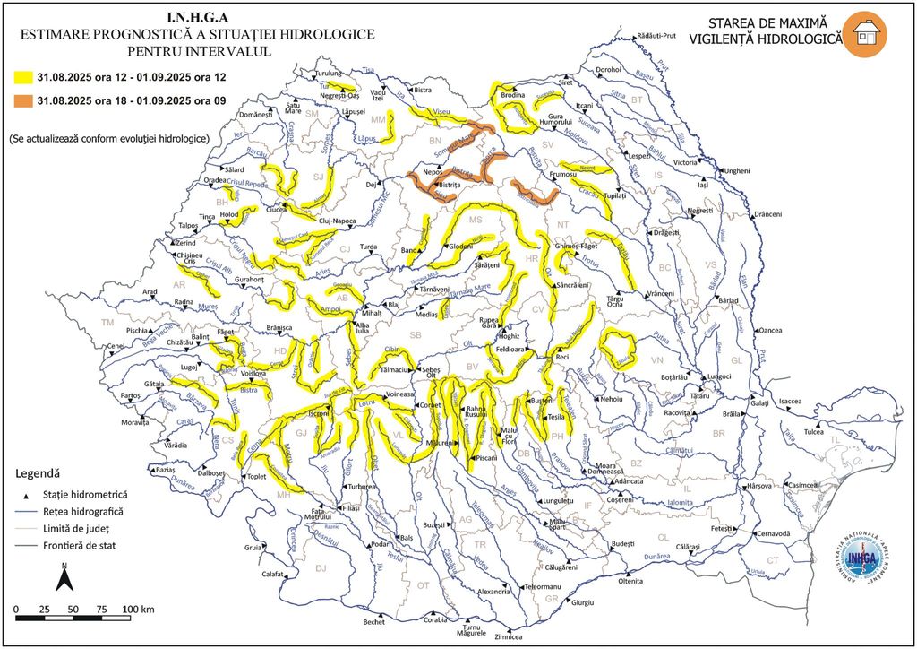 Administrația Națională de Meteorologie (ANM) a emis pentru județul Bistrița-Năsăud o avertizare cod portocaliu, valabil duminică 31 august. Fenomene vizate: instabilitate atmosferică accentuată și averse importante cantitativ.