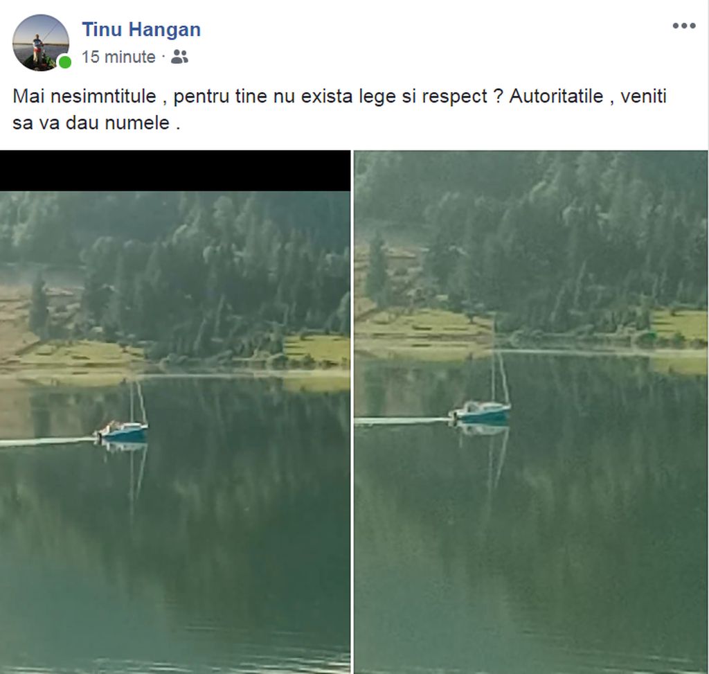 În minivacanţa de Sfânta Maria, în care bugetarii sunt liberi, unii îşi fac de cap pe lacul de acumulare de la Colibiţa. O barcă având motor termic a fost filmată, joi, de proprietarul unei pensiuni. Potrivit lui Tinu Hangan, în timp ce unii investesc în ambarcaţiuni permise pe lac, alţii sfidează prin folosirea în continuare a motoarelor termice. Iată postarea: