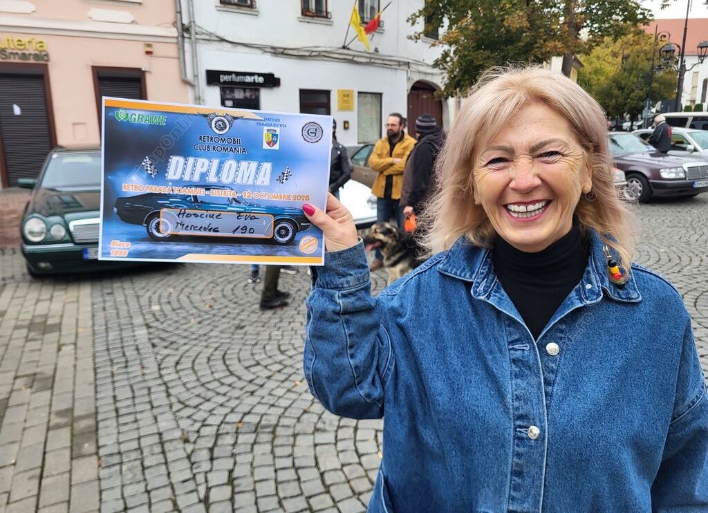 ”Am venit și eu cu un Mercedes din 1986. E prima dată când vin la un astfel de eveniment. Nu am mașina demult, doar de anul trecut. E foarte frumoasă, veche. M-am temut că va fi greu de condus, dar, după ce te așezi, îți dai seama că e foarte bine construită, și vizibilitatea e foarte bună, și scaunele comode”, ne-a spus doamna Eva.