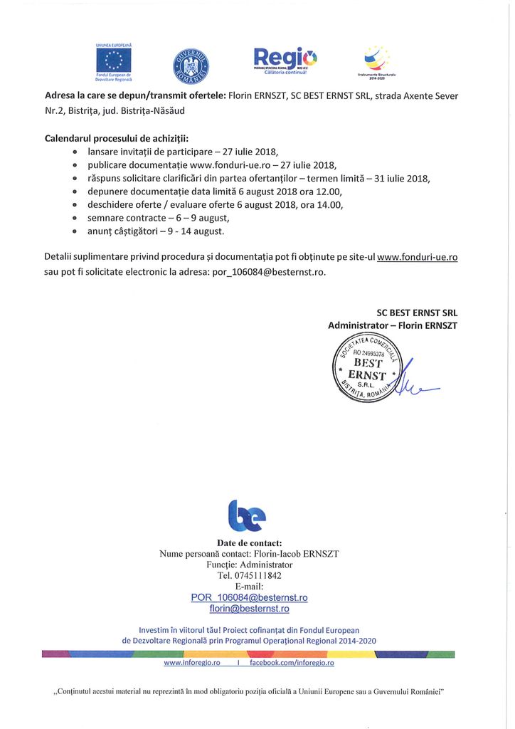 SC Best Ernst SRL Bistrița: Lansare procedură de achiziție echipamente, Lot 2