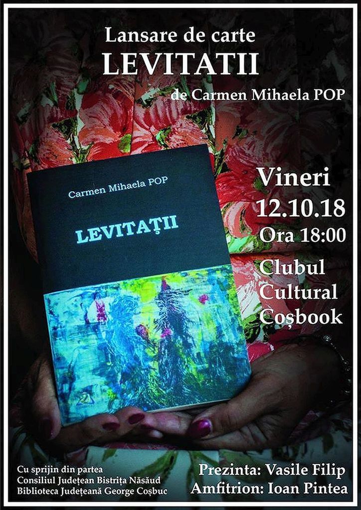 Vineri 12 octombrie, ora 18.00, în Clubul Cultural ”Coșbook”, are loc lansarea de carte ”Levitații” de Carmen Mihaela Pop.