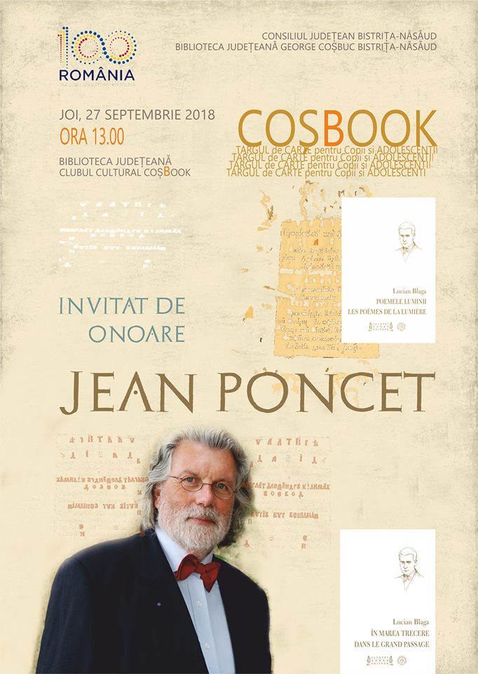 Ora 13.00: • Întâlnire cu Jean Poncet. Lansare de carte: Lucian Blaga – În marea trecere. Dans le grand passage. Jacques André Editeur, Editura Școala Ardeleană