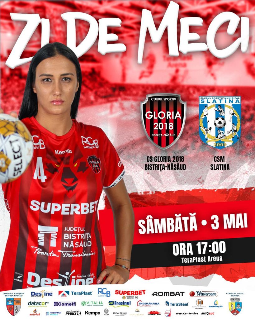 Handbal: Gloria 2018 Bistrița-Năsăud, care ocupă locul 3 în campionat, întâlnește pe teren propriu penultima clasată CSM Slatina, în etapa a 25-a din Liga Florilor.