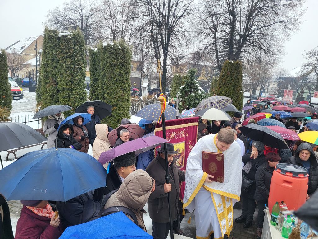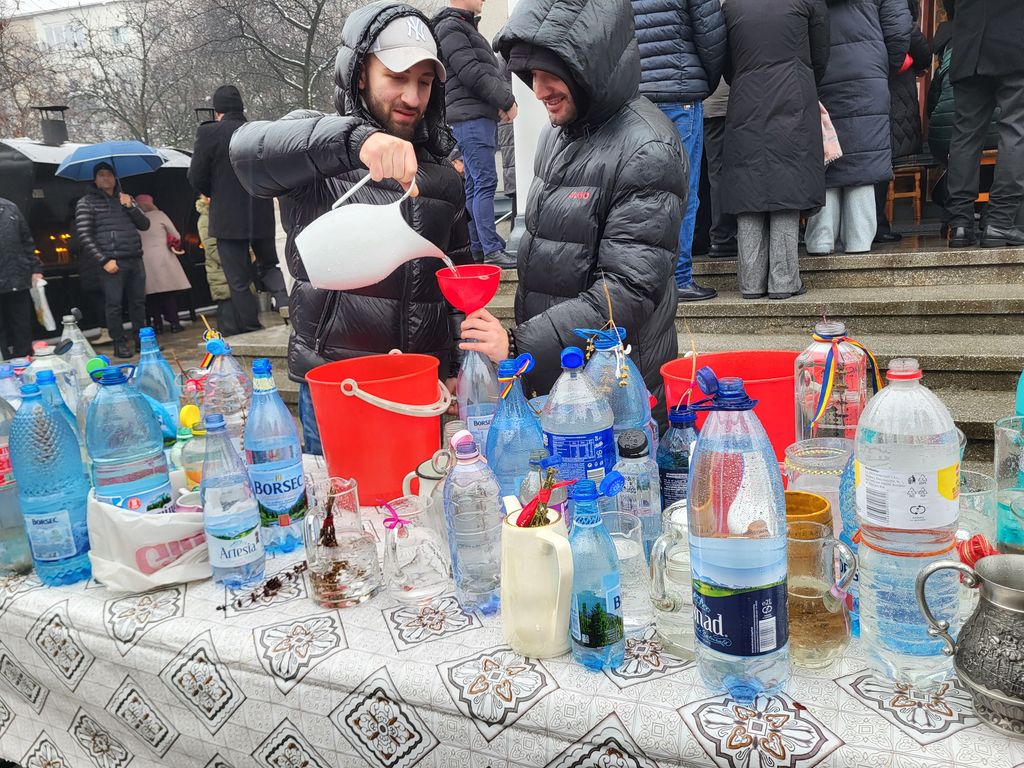 ”În raport cu noi, apa se manifestă în trei feluri. Are un principiu al vieții și altul al distrugerii. Noi, fără apă, nu putem trăi. Este esențial pentru om, pentru viețuitoare, să se hidrateze. Nu putem trăi fără ea. Depindem de apă, suntem apă, dar apa mai are și principiul distrugerii. Oamenii au încercat de-a lungul timpului să controleze apa și să o stăpânească, dar nu au reușit pentru că are o forță extraordinară a naturii. Când ea se dezlănțuie, omul nu are nicio putere în fața ei. Apoi, mai este principiul purificării. Ne curățim prin apă, ne spălăm trupește, dar cel mai important este că ne purificăm, ne sfințim prin apă. Prin procesul de purificare a apei, ne naștem din nou prin Taina Sfântului Botez. Spune Domnul Iisus Hristos că cine nu se va naște din apă și din duh nu va putea intra în Împărăția Cerurilor. Botezul, afundarea în cristelniță de trei ori, în numele Sfintei Treimi, este pentru fiecare dintre noi o nouă naștere, din apă și din duh, așa cum au botezat Sfinții Apostoli și urmașii lor, episcopii și preoții până în ziua de astăzi. Această apă minunată conține duh sfânt. Preotul rostește această invocare a lui Dumnezeu prin care apa pusă în cristelniță este pătrunsă de puterea lui Dumnezeu, iar din apă devine Agheazmă, adică purtătoare de Dumnezeu și dătătoare de viață”, a spus părintele protopop Marius Pintican.