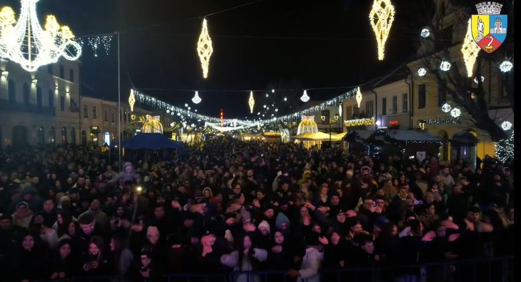 Oamenii s-au adunat în centrul orașului pentru a întâmpina cu voie bună Anul Nou, într-o atmosferă de sărbătoare.