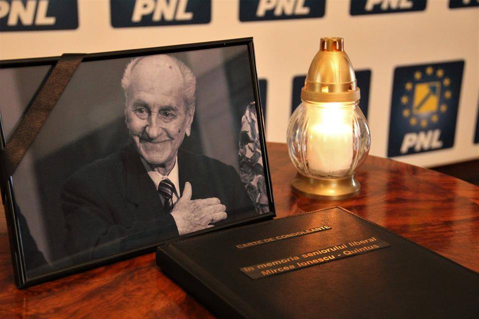Născut în 1917, în plin Război Mondial, Mircea Ionescu Quintus – care a încetat din viaţă vineri – s-a înscris în PNL la vârsta de 19 ani, a luptat în cel de-al Doilea Război Mondial, a fost deţinut politic în perioada comunistă, iar după Revoluţie a fost preşedinte al PNL, ministru al Justiţiei, deputat şi de două ori senator. Mircea Ionescu Quintus a fost decorat de preşedintele Klaus Iohannis în luna martie, cu o zi înaintea împlinirii vârstei de o sută de ani. Ultimul eveniment public la care a participat a fost ceremonia de la Palatul Cotroceni, care a avut loc în 17 martie. Seniorul liberal a fost decorat de preşedintele Iohannis cu Ordinul “Steaua României” în grad de ofiţer, fiind al treilea preşedinte care i-a oferit o distincţie, după Ion Iliescu şi Traian Băsescu.