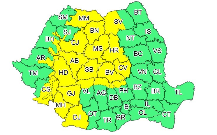 Pe parcursul zilei de luni, 27 august, vor fi perioade cu instabilitate atmosferică accentuată în cea mai mare parte a Transilvaniei și local în Oltenia, Maramureș și zona de munte. Aceasta se va manifesta prin averse ce vor avea și caracter torențial, frecvente descărcări electrice, intensificări ale vântului și condiții de grindină. În intervale scurte de timp sau prin acumulare, cantitățile de apă vor depăși 20…25 l/mp și izolat 40…50 l/mp.