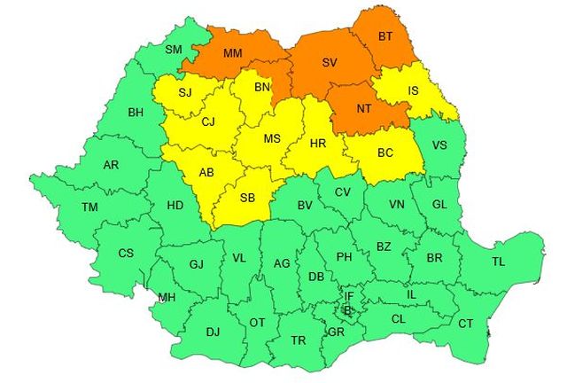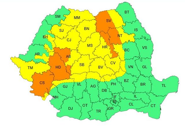 După avertizările de caniculă și disconfort termic (joi-sâmbătă), Administrația Națională de Meteorologie (ANM) a emis pentru județul Bistrița-Năsăud atenționări cod galben și cod portocaliu de instabilitate atmosferică respectiv averse importante cantitativ.