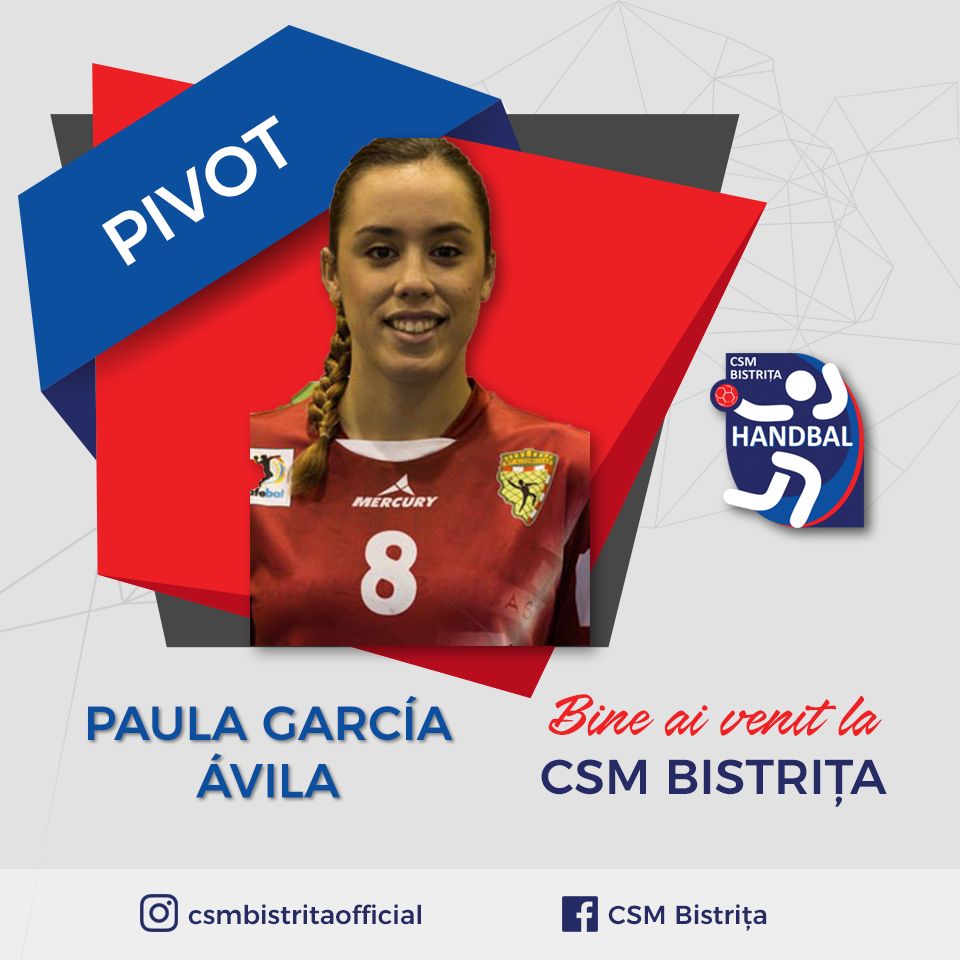 ”Suntem bucuroși să vă anunțam primul transfer. Paula Garcia Avila a semnat un contract pe un an cu echipa noastră. Jucătoarea spaniolă are 26 de ani, 1,80 înăltime și joacă pe postul de pivot. Este câștigătoare a Challange Cup în 2015 cu Union Mios Biganos din Franța. Are 15 meciuri jucate pentru națională Spaniei. Anul trecut și-a reprezentat țara la Campionatul Mondial din Germania, unde Spania s-a clasat pe locul 11. A jucat între anii 2010–2012 la BM Elda Prestigio, între 2012–2014 la Helvetia BM Alcobendas, între 2014–2015 la echipa Union Mios Biganos – Bègles, în sezonul 2015–2016 pentru Mecalia Atlético Guardés iar din 2017 joacă la Rincón Fertilidad Málaga, club pe care îl părăsește pentru a veni la Bistrița. Bun venit Paula García Ávila! Bienvenido Paula García Ávila!”, a anunțat CSM Bistrița.