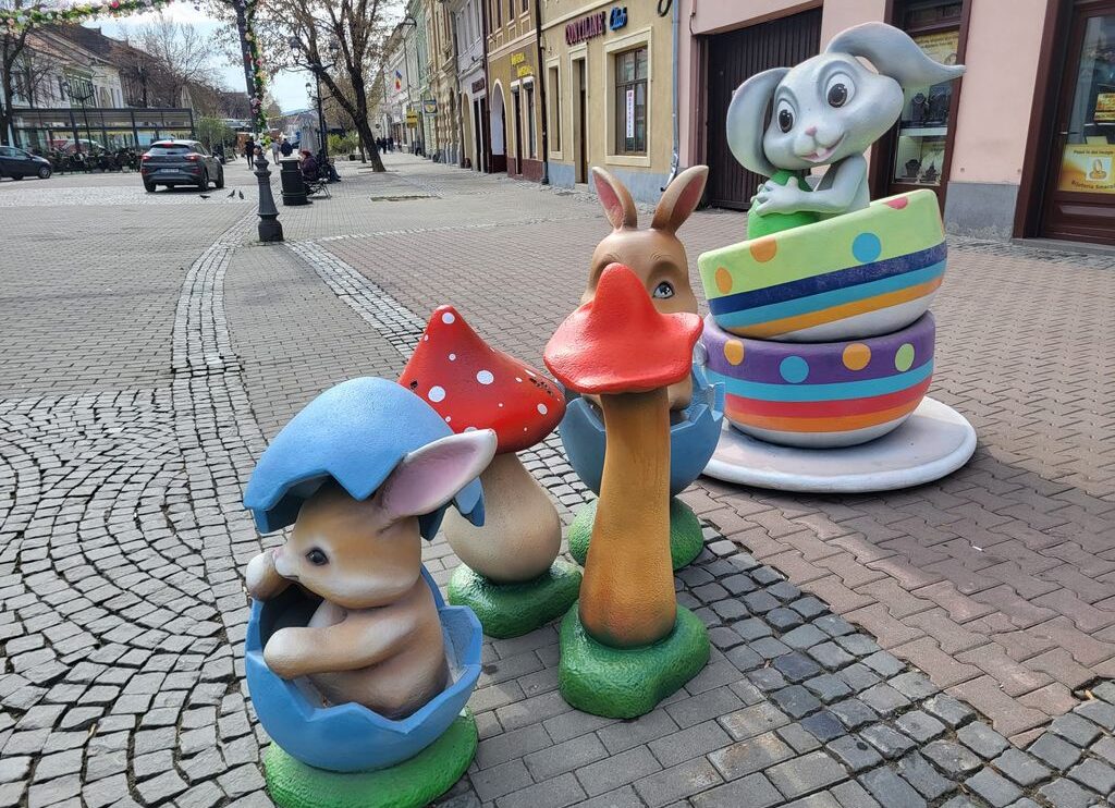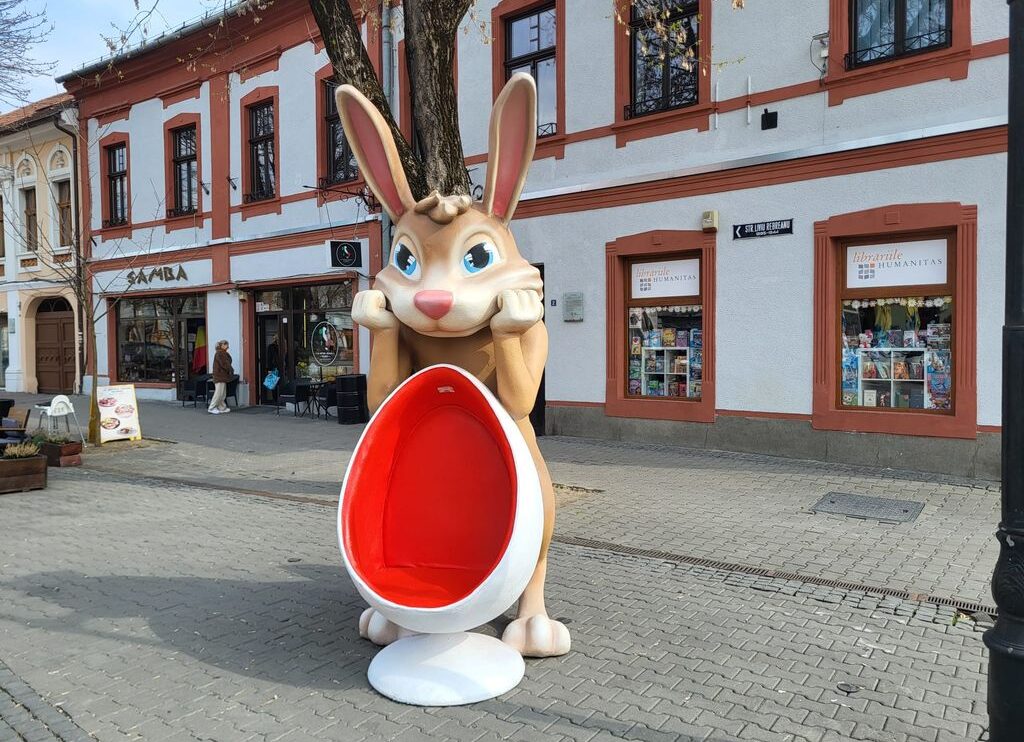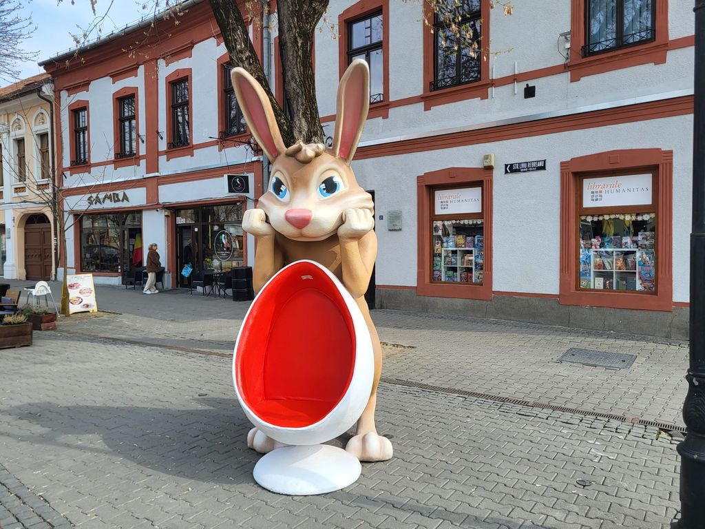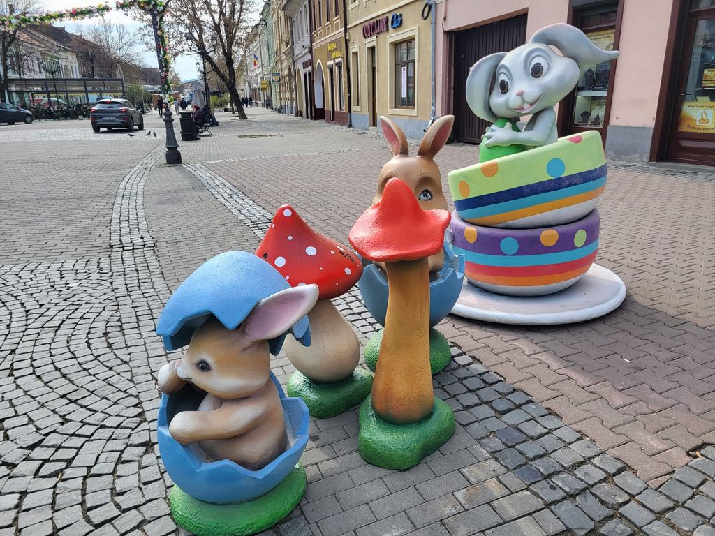 Astfel, pe lângă ouăle uriașe așezate în locurile cunoscute din piațete și lângă Biserica Evanghelică, pe Pietonalul Liviu Rebreanu și în Piața Centrală au apărut decorațiuni și figurine pline de culoare.