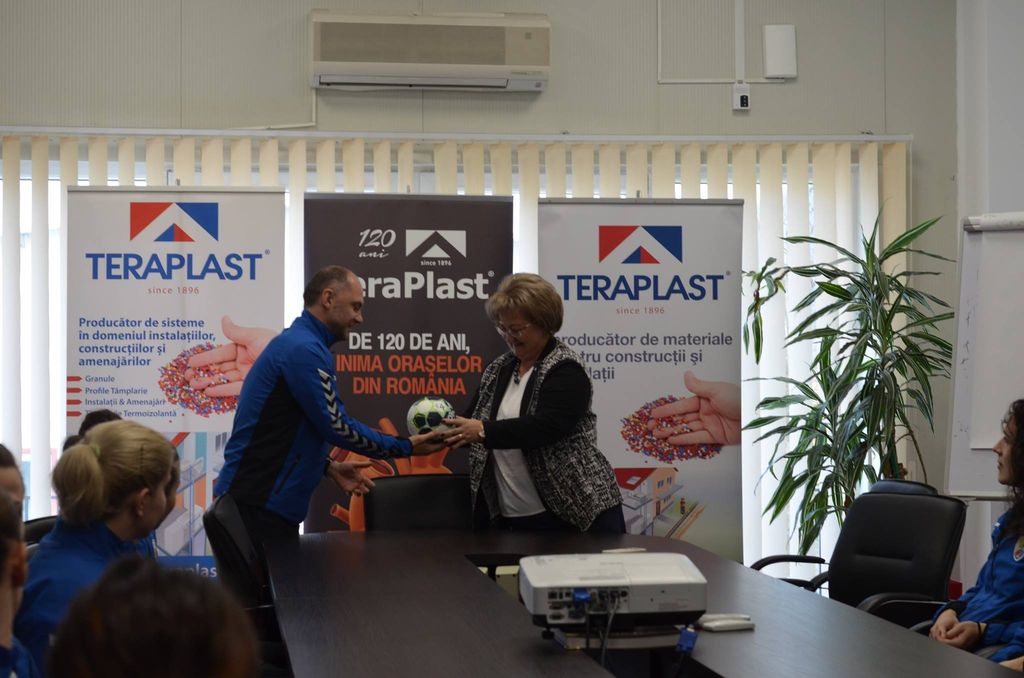 ”Am vrut să mulțumim Teraplast pentru sprijin. Și cum puteam să o facem mai bine decât vizitându-i pe cei ce muncesc la aceasta societate comercială ”acasă” – la locul lor de muncă. Le-am spus că efortul lor contează enorm pentru noi și le-am oferit o minge de handbal cu semnăturile tuturor handbalistelor noastre. Jucătoarele CSM Bistrița s-au fotografiat cu cei de la Teraplast, pe care i-au invitat să le fie alături la fiecare meci”, se arată pe pagina de Facebook a echipei.