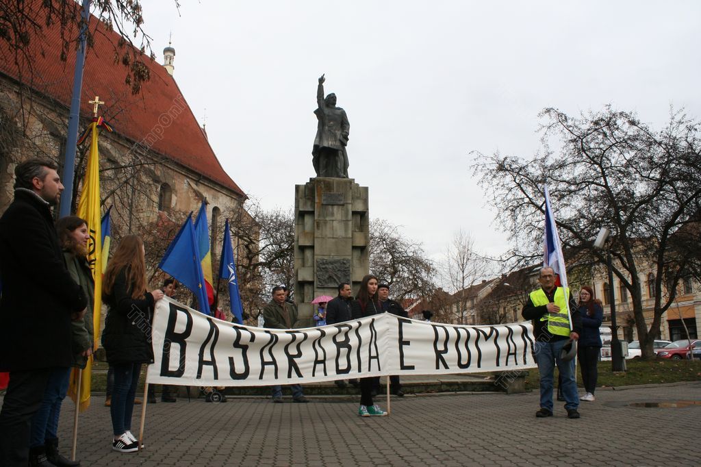 Profesorul Florin Bojor, însoţit de mai mulţi elevi ai săi care au purtat steaguri tricolore şi pancarte pe care au scris “Basarabia e România”, iar membri ai Asociaţiei Bistriţa Civică au venit să-i ureze drum bun şi să îl încurajeze pe temerar.