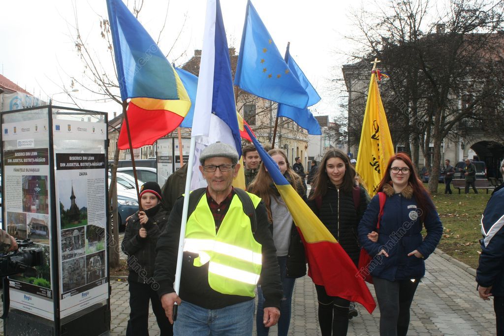 ŞTIREA INIŢIALĂ În prezenţa a numeroşi tineri şi membri ai societăţii civile care au venit cu steaguri şi pancarte la statuia poetului Andrei Mureşanu, bistriţeanul Antal Francisc (63 de ani) a pornit, luni, la prânz, pe jos spre Chişinău. El va duce drapelul naţional şi cel al judeţului Bistriţa-Năsăud până în Republica Moldova, un gest simbolic pe care omul vrea să-l facă în anul centenarului Marii Uniri şi cu ocazia Marşului Unionist care are loc în 25 martie la Chişinău.